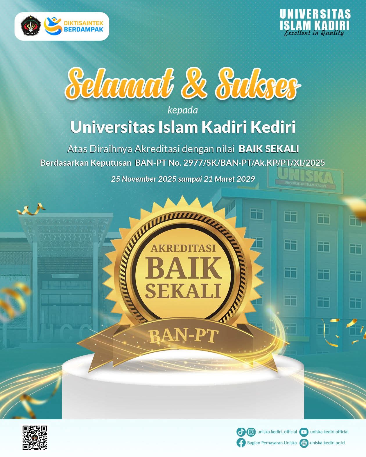 Civitas akademika mengucapkan selamat dan apresiasi setinggi-tingginya atas diraihnya peringkat Akreditasi “Baik Sekali” dari BAN-PT. Capaian ini merupakan hasil kerja keras, komitmen, dan kolaborasi seluruh unsur pimpinan, dosen, tenaga kependidikan, mahasiswa, alumni, serta para pemangku kepentingan.